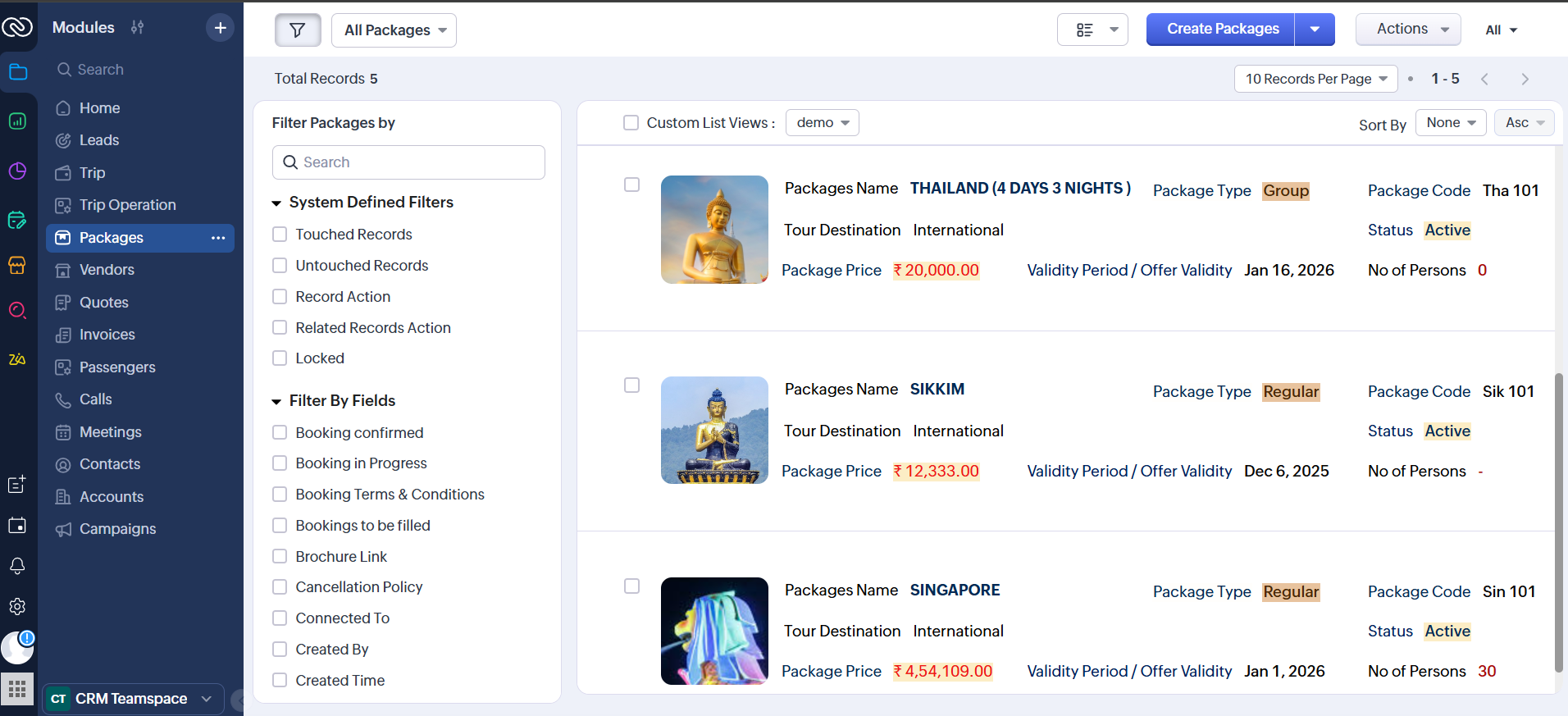 Travel agency CRM manages booking inquiries, tracks customer travel preferences, coordinates package customization, handles itinerary changes, and maintains relationships for repeat travel business.